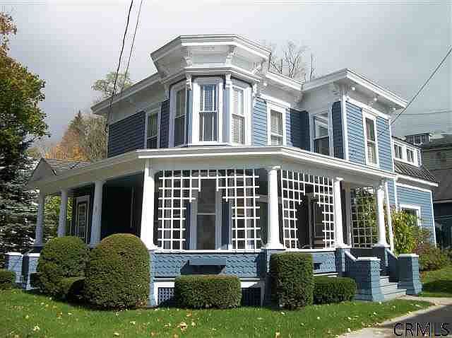 Village Victorian on side street w/ wraparound front porch for rocking. Spacious eat-in kitchen w/ cherry Rutt cabinets and pantry. 3 large bedrooms, plus dressing room. 2 large bays, hardwood floors, French doors and moldings add the charm of an older home. Artfully landscaped w/ loads of perennials. Lovingly maintained inside and out.
