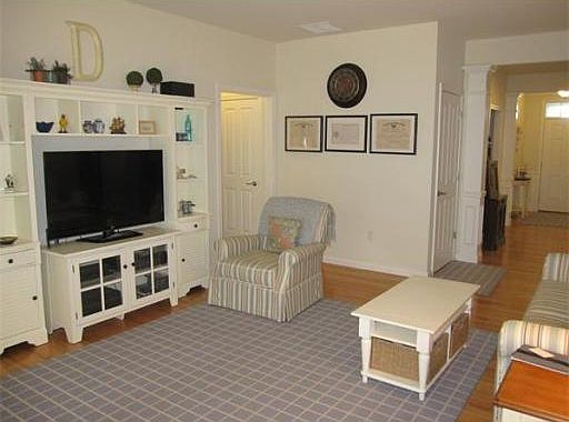 Stunning, almost new fully upgraded Franklin model built by Del Webb.The one floor living includes a spacious cook's kitchen w/hardwood floor, cherry cabinets,granite counters, large eat-in area with bay window, formal dining room w/hardwood flooring & wainscoting, great room w/ transom window, hardwood flrs,gas fireplace & sliders to deck, electric awning. Master suite, w/tray clng & walk-in closet, + second bedroom & bath complete the 1st floor. Look out to woods in the rear yard. Extra long driveway. This home is perfect!