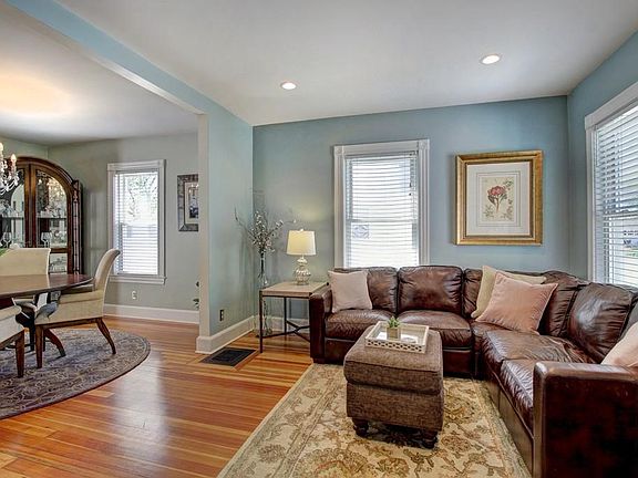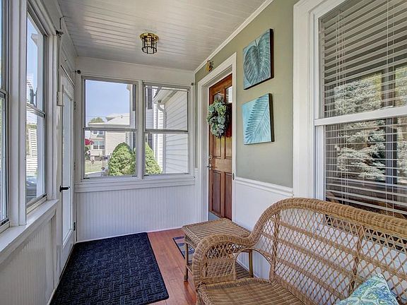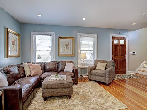 This classic New England colonial offers the charm of yesteryear along with the amenities of today, with a bright open flow to the living space, central air, fully-applianced kitchen with a large center island, Viking appliances and an eating area that steps out to a deck overlooking the fenced yard. With bluestone steps to the entry porch, newly refinished hardwood flooring, generous living and dining room and a half bath with laundry on the first floor and three good sized bedrooms and a full bath with jetted tub on the second. Young finished basement with a media area and playroom plus half bath. High efficiency gas furnace and hot water in 2016, roof 2015, young electric service and easy-care vinyl siding. There is a one car garage and shed in the private, fenced back yard. Steps from the park, easy walk to elementary school and commuter rail, quiet side street! This home is ready for you to move in and enjoy. Open houses Saturday and Sunday, May 12 & 13, 1 to 3pm
