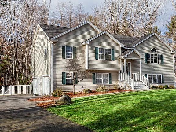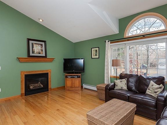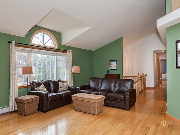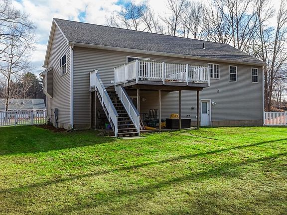 A spacious, newer beauty just steps from the Manhan Bike Trail: 4 beds, 3 full baths in an open floor plan with fireplace, vaulted ceilings, and pretty wood floors. Woods wrap the house, fenced yard, and deck not seen from the road. Large master with deep closets, tasteful tiled master bath facing the woods. Enormous finished walk-out basement has space for a playroom --and a home office and a gym. Kitchen equipped with pantry and enough storage for the gourmet and open to dining area and sliders to deck. Back windows face privacy, mature trees, and quiet. Ample bedroom and closet sizes. Laundry on upper level. Spacious garage, driveway in excellent condition, and a backyard for get-togethers or just hours of relaxation. Lovely landscaped curb appeal. Extremely well-maintained home. Brand new dishwasher purchased 5/20/16. Shopping is nearby, and highway access. Architectural interest inside and out. Functional space on each floor. List of recent improvements in "Remarks"