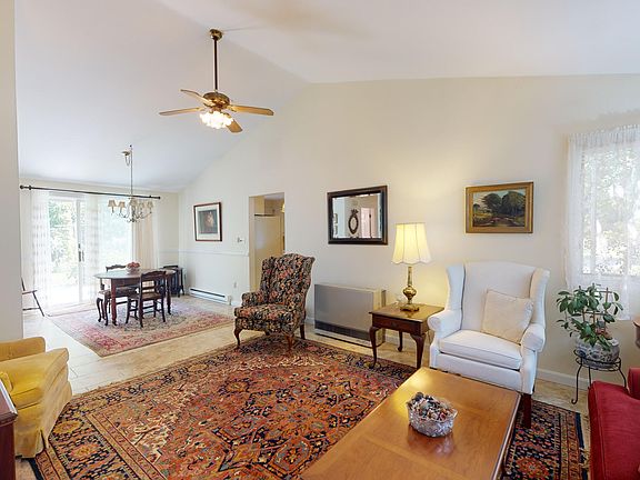 2 bedroom, 2 bath condo. Boasts a bathroom off of the primary bedroom, jacuzzi walk-in tub, cathedral ceilings to make it bright sunny and open, a Lopi enamel cast-iron fireplace that works during a power outage, screen room, air conditioner and dehumidifier. All of this along with perennial gardens, shrubs, a patio and a location that offers privacy and a quiet neighborhood.