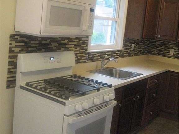 Recently renovated, new bathroom with porcelain tiled floor, new kitchen cabinets, range, refrigerator, microwave. Hardwood floors in bedrooms and living room. Eat-in kitchen with ceramic-tiled floor. High Efficiency heating system. Reserved off street parking space.