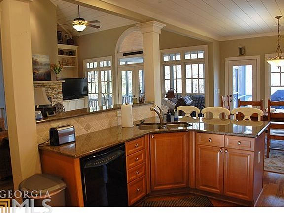 Newly renovated craftsman home on slightly sloping lot with level driveway. Open floor plan excellent for entertaining family and friends. Vaulted ceilings on the main level with master bedroom. Open staircase to lower level with 9+ foot ceilings, a large family/entertaining room with wet bar. Split bedrooms on lower level with two full baths. Daylight basement with patio under deck. Vaulted screened porch on main level with walk-out to open deck for grilling. Enjoy all the amenities and mountain living at Big Canoe.