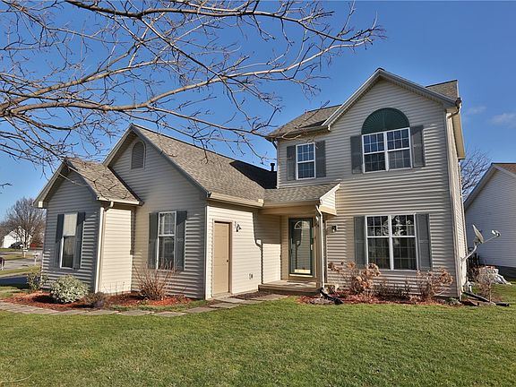 Welcome to your dream home in the heart of Legends Villas, just moments away from the shores of Lake Ontario. This meticulously maintained 3-bedroom, 2-bathroom residence offers a perfect blend of comfort, style, and serenity! Enjoy the convenience of a first-floor bedroom with an adjoining full bathroom, ideal for guests or as a primary suite. The residence spans 1,201 sq ft, complemented by an additional 200+ sq ft of finished basement space. The thoughtful design also includes first-floor laundry and a 220 amp electric heater in the garage. Embrace the picturesque views AND direct access to the pond, which provides an opportunity for relaxation and outdoor enjoyment. This home is in excellent condition, with recent updates that include: New roof (2022), New Carpet in the basement (2018), and second floor (2022). All new appliances (2017), within a contemporary and spacious eat-in kitchen. New Anderson slider (2023). New water heater (2018). New furnace (2019). Brand new LED lighting (2024). Experience pride in ownership throughout this home! Delayed showings until Thursday, 2/8, at 8 AM, with negotiations delayed until Tuesday, 2/13, at 12 PM. OPEN HOUSE: Saturday 2/10 – 12-2p