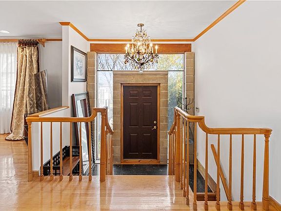 Welcome to this gorgeous privately gated home situated on top of Emerson hill. With the views including water and the Verrazano bridge, this location will leave you wowed. Through the foyer and to an open floor plan with opulent windows and recessed lighting, it's perfect for those who love to entertain. The eat-in kitchen features custom cabinetry, stone backsplash, granite countertop, stainless steel appliances, tile floor and a large breakfast island. Right next to the kitchen is your charming dining and living room area, which is perfect for hosting gatherings. Incredible natural light fills the house throughout. This level also features two bedrooms, one including the primary bedroom with sensational views, a large closet and a shared bath. The large bathroom features tiling from top to bottom, a stunning jacuzzi, vanity, bidet and a separate shower. The lower-level features additional two spacious bedrooms, laundry room, garage and a bathroom with shower. Each bedroom has their own custom closets. One of the bedrooms has direct access to the yard. Turn any of the bedrooms into a home gym or office space for more convenience. This home has a ton of potential to mold it into your own! The approximately 11,200 square foot of landscaped property comes along with peaceful surroundings for being in the nook of the hill. The in-ground pool with a custom-built gazebo is a summer resort vision. Another ultimate addition to this home is the endless amount of storage space and a great garage. You will appreciate the convenience of the location, making your commute simple with nearby express buses, expressway and the bridge! Very accommodating to local shopping, restaurants, cafes and local attractions.