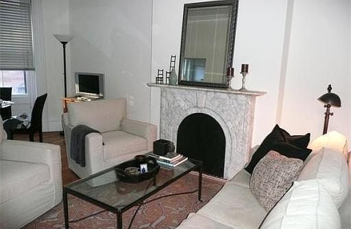This amazing apartment features hardwood floors, decorative marble fireplace, lots of light, bow front windows, crisp kitchen with dishwasher and disposal, common washer/dryer and steps to T/public transportation, best shopping and dining.
