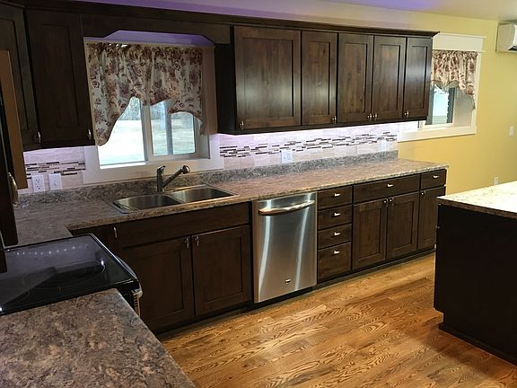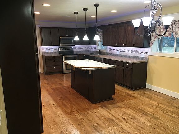 Home remodeled 5 years ago. Basement,kitchen and bathrooms tore out to foundation. Floor plan updated and raided. Septic system totally replaced and roof replace to the trusses. Kitchen hard wood floor, high end carpet stain proof, fire pit in yard. Swingset stays shed is 3/4 full of dry wood for fireplace. Also place for a garden and several fruit trees.