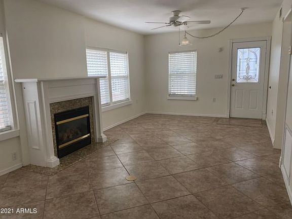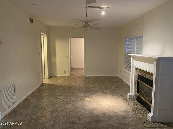 Charming single story home w N S exposure and NO HOA is move-in ready and awaiting its next loving owner! Split floor plan w tile flooring thu out. Kitchen features pendant lighting and granite counter tops w ample cabinet and counter space, family room w gas fireplace is perfect for staying cozy during the cool months. Master bath has tiled walls w custom molded wainscoting and walk-in shower w full tile surround. Back courtyard w covered patio and flagstone flooring has mature shade tree and easy maintenance desert foliage, water fountain for calming ambiance. 2-car garage + gated carport provide plenty of parking and extra storage space. Conveniently located close to light rail, shopping, dining and freeway.