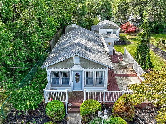 Charming and well-maintained ranch home on a larger than average lot in close proximity to the bay. This ranch has a large open living room offering tons of light though the many windows and sliding doors. There is a comfortable dining area, A fully equipped kitchen, a full bath with a stackable washer and dryer and two small bedrooms. One bedroom offers a closet, the other could accommodate a single bed. There is a detached cottage (living room/bedroom combo) with a full bath. The cottage does not have heat. There are two storage sheds, a huge deck with a sun setter shade, off street parking and plenty of yard to enjoy. There are upgrades to most of the house. Newer windows, kitchen, bath, HVAC and more.