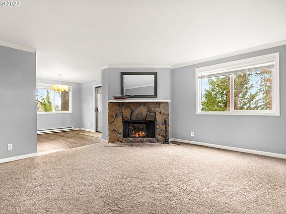 This bright & wonderful first floor condominium provides peaceful seclusion without the inconvenience of being far away from Portland's many treasures. Open living room with wood burning fireplace, brand new carpet, a private deck with wooded views, & two spacious bedrooms are only the beginning of this home's charm. HOA includes water/sewer/trash, a pool on site, plus all the Mt Park amenities, lap pool, weight room, outdoor courts, walking trails, classes & much more.
