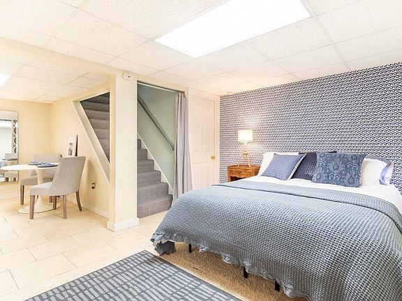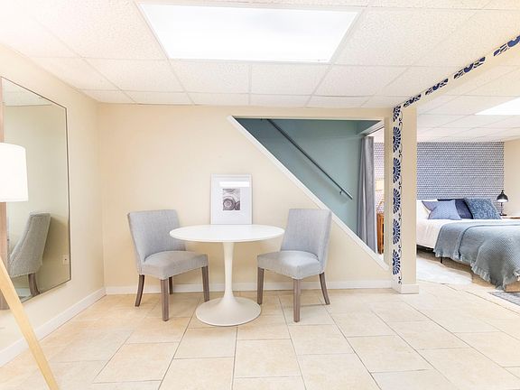 newly furnished large studio apartment, heated floors, new bath with subway tile shower, new efficiency kitchen, large walk in closet, lots of storage space, new washer /dryer, off street parking , private entrance , outdoor space available .* (Apartment can be rented unfurnished if desired) Last months rent due at signing, Heat and hot water included, no pets, one parking space off street