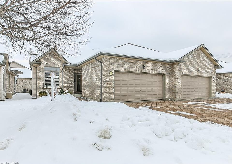 Welcome Home to this Elegant & Impeccably Maintained Condo, in North London's Sought After Riverview Condos! This immaculate condo features 2+1 generous sized bedrooms, 2.5 bathrooms, a RARE double car garage with double driveway--- beautiful flow, including Pittao built quality finishes ---cove moldings, leaded glass transoms, original hardwired sound system, a large back deck...absolutely perfect for entertaining! The grand foyer leads to the tastefully updated eat-in kitchen with granite countertops, gas stove, stylish backsplash & custom oak cupboards. Main floor also showcases a vast open formal dining and living room area with hardwood floors and an enchanting gas fireplace. The spacious master bedroom retreat has upgraded hardwood floors, a 4PC ensuite bathroom with jetted tub and separate shower, as well as a walk-in closet. There is an additional bedroom or office space on the main floor with hardwood floors, conveniently located next to the 2PC washroom, with quick access to the full washer & dryer closet. The sprawling finished lower level includes a HUGE family room, spare bedroom, den or gym area, 4PC bathroom, plus TONS of storage area in the finished utility portion. This great condo is a short walk to the riverbanks, trails & walking paths which lead to downtown parks! Easy access to all the great amenities London has to offer. Move-in and RELAX---the exterior maintenance is covered, as well as snow removal and landscaping. Freshly painted throughout! GET IN before it's GONE!