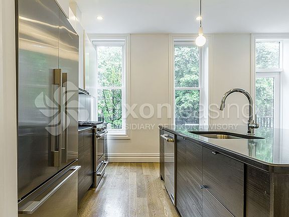 NO FEE + 1 MO FREE! 1 mo commission paid to cooperating broker. 4 Bed ; 3 Bath ; 1,907 SQFT Gross Rent: $4,890 Net Effective Rent: $4,485 (1 month free on a 12 month lease) Enter this home and discover sun drenched hardwood floors in the grand parlor with plenty of room to entertain. Step through the open floorplan to the rear kitchen where two large windows let light in and shine off of an array of stainless steel appliances, including a gas range + hood, refrigerator and dishwasher. Gorgeous custom cabinetry and a stunning decorative fireplace mantel adorn this beautiful space. Also in the kitchen you ll discover an entrance to the open steel deck overlooking the expansive backyard and garden. With plenty of space for patio furniture, you ll love designing this outdoor oasis. Travel upstairs where you ll find two spectacular, fully renovated bathrooms, and two expansive bedrooms, each with plenty of room to personalize into your dream space. Also on this level, you ll find an additional room perfect to be used as a live/work office, study or den area. Two huge skylights on the top level of this home let light flood the space and shine off gleaming hardwood floors throughout. Venture to the bottom floor of this home where you ll find yet another bedroom and a large rear family room, ideal to kick back and spend a relaxing evening with your closest friends (or it can easily be converted into a fourth bed!) A washer and dryer have been added to this home for extra convenience and utility to save you the trek to the local laundromat. An excellent location puts you down the block from several great transportation options, including the J, Z and L lines and several major bus routes, setting you up for a swift commute. You re also just a few blocks down from the beautiful Saratoga Park and many places to catch a great bite to eat, like Angie s Breakfast Spot and Salud Bar & Grill. WANT TO SEE EVEN MORE? We have homes for rent in a variety of sizes, layouts, and price points. Neighborhoods include: Park Slope / Cobble Hill / Clinton Hill / Fort Greene / Bed Stuy / Bushwick / Williamsburg / Crown Heights / Harlem / Weehawken / Jersey City (and more!) - 24/7 assistance - Rent can be paid by credit card - Pets allowed (Breed and weight restrictions apply, one-time fee varies by breed and weight.) - Best Applicant Policy Viewings available 7 days a week, make your appointment online today, or call (201) 366-8686 to speak with an agent.