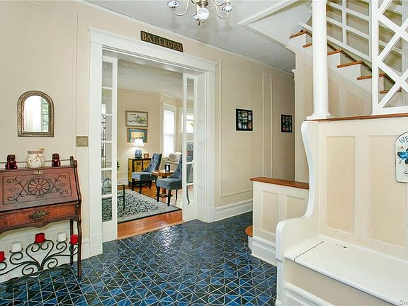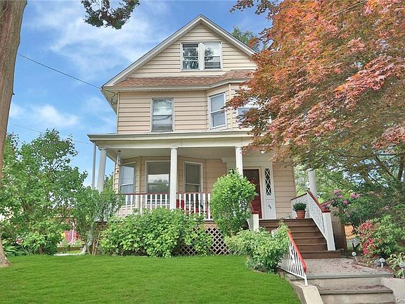 Charming Side Hall Colonial with an inviting front porch. Tiled entry welcomes you with built in bench. Living room Dining room boast hardwood floors thoughout, a stone fireplace and stained glass windows. Find more built-ins and large leaded windows overlooking the backyard. This home is full of character!!! Eat-in-kitchen with sliding glass doors to deck and fenced backyard - envision easy dinners on the deck, kids playing ball in the yard, your own organic garden - a private oasis. Upstairs find 4 rooms and a hall bath-Oversized master bedroom, two sweet bedrooms and a nursery. Third floor offers another bedroom/office and a large attic space - easily repurposed to a master bedroom or bonus room. This great neighborhood borders Iona College District and offers easy access to all highways, parkways, busses and New Rochelle Metro North. Ward School, Albert Leonard Middle School with bussing, NRHS. Run don't walk to see this home!