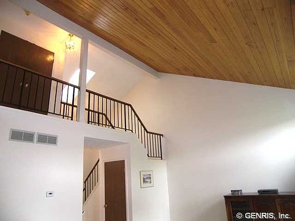 * Dramatic Floor Plan * Bright and Open * 2 Story Foyer with Skylight * Tongue and Groove Cedar on Cathedral Ceilings in Living Room * Living Room w/Gas Fireplace & Transom Windows * Full Open 2nd Floor Bridge Overlook Living Rm * All New Kitchen Cabinets, Countertops & Floor 2012 * Breakfast Bar in Kitchen * Formal Dining Area * Master Bedroom Suite w/Private Bath & Walk-in Closet * New Tub/Shower Unit In Main Bath * Almost All Interior Painted 2012 * New 2013 Energy Star 90+ High Efficiency Gas Furnace * Patio Doors Lead to Spacious Deck with Built-in Seats * Overlooks Trees & Common Area *