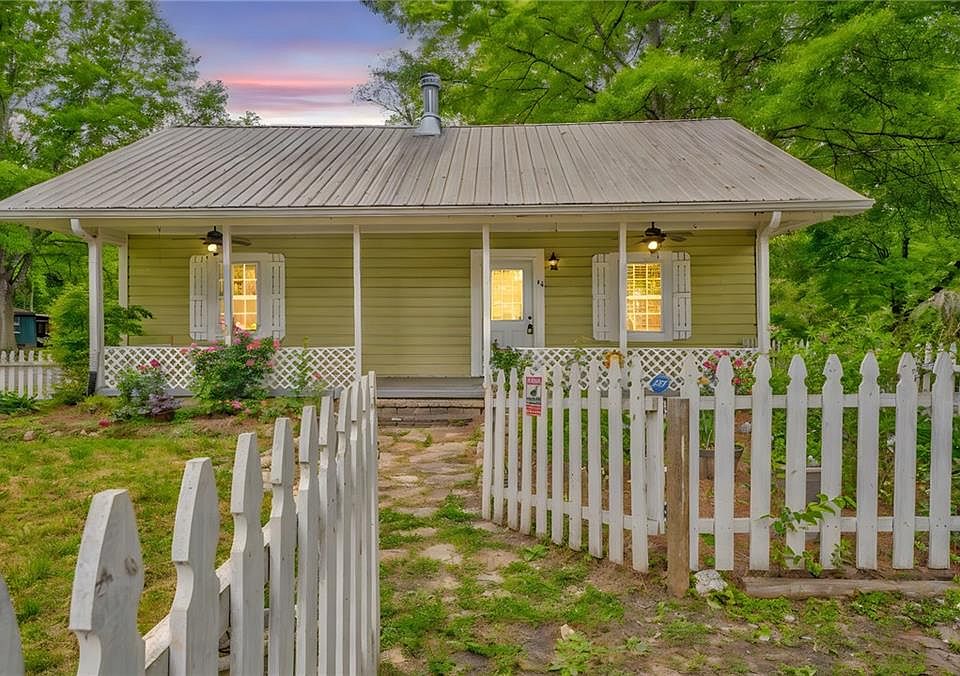 Come take a look at this beautiful cottage nestled near downtown Cave Springs! Take a leisurely stroll up the charming stone walkway leading to a spacious front porch adorned with a delightful swing—perfect for enjoying peaceful mornings or quiet evenings. Step inside to a cozy family room with a welcoming wood-burning stove, setting the stage for comfort and warmth. The well-appointed kitchen features an island, electric range/stove, and ample cabinet space, while a separate dining room offers the ideal space for intimate gatherings. A convenient laundry/mud room adds extra functionality to this inviting home. This cottage includes two large, charming bedrooms, each with a decorative faux fireplace that adds to its unique appeal. Equipped with two tankless water heaters, you’ll enjoy an efficient and continuous supply of hot water. Outside, the backyard becomes your personal oasis, ideal for entertaining or simply unwinding. Two exterior buildings add versatility—one could serve as a cozy 15x30 "she shed," and the other as a 20x40 man cave or hobby space. Just a couple of blocks from Cave Springs' popular restaurants and shops, this charming home offers the perfect blend of character and convenience. Come make this YOUR home today!