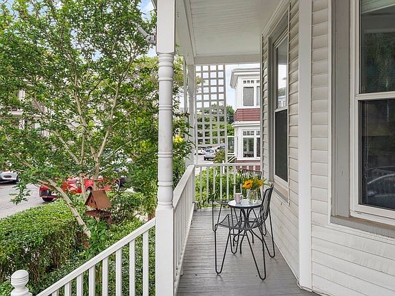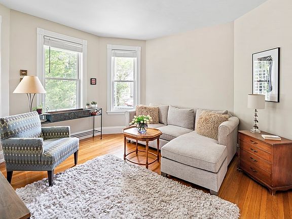 Terrific 2-BR condo in prime location. Front facing LR w/bay window overlooks one-way Farquhar Street. Adjacent Den could be Office or DR. Two good-sized bedrooms. Updated eat-in-kitchen w/granite counters & s/s appliances. Beautiful wood floors. High ceilings. Walls & trim freshly painted in attractive color scheme. Period molding. Several new ceiling fans. Large windows, most w/cordless blinds. Private, rear-facing deck overlooks generous yard. Large, exclusive use storage area & shelves in basement. Private laundry just outside kitchen door. 1 Car parking. Substantial renovations in 2008 w/then-new windows, furnace, a/c, vinyl siding. Slate roof. Seller to pay for upcoming renovations to front porches. Minutes to 2 commuter rail stops. Close to restaurants, cafes and shops in vibrant Rosi Village & the shopping on West Roxbury Centre St. Walkable to parks, trains and bus stops. Easy access to highways. First showings at OH on Sat 7/22 at 11am; Offers due Wed. 7/26 at 3pm.