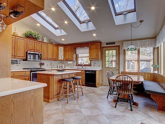 This inviting residence boasts an expansive open floor plan, ideal for hosting gatherings, and a stunning, custom-designed kitchen flooded with natural light. The fully finished basement is perfect for entertaining with its wet bar & a cozy wood-burning stove that adds warmth and charm.