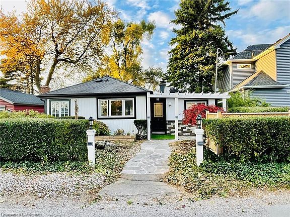 Lakeside Living at Its Finest – Skyline Views and Serene Comfort! Experience the best of lakeside living in this stunning 2-bed, 2-bath retreat with unobstructed views of the Toronto skyline and direct access to Lake Ontario. Whether you're cooking, entertaining, relaxing, or waking up to the sunrise, the lake is always in view. Step into a fully landscaped, low-maintenance property—no grass to cut, just peaceful surroundings designed for easy enjoyment. Inside, the open-concept layout blends comfort and character with vaulted plank ceilings, skylights, real cobblestone, and reclaimed barn board flooring. The beautifully finished kitchen features stainless steel appliances including fridge, new dishwasher, washer and dryer, a live-edge counter, and seamless flow into the living space—so you never miss a moment or the view. The cozy living room centers around a wood-burning fireplace, perfect for watching sailboats drift by. The primary suite offers 8-ft patio doors, a private ensuite with walk-in shower, and beautiful views. The second bedroom overlooks the landscaped front garden. Laundry is tucked in a convenient utility room. Outside, enjoy a private tiered patio oasis with fire pit, professionally designed gardens, and a lower patio with private pier and full shoreline protection—ideal for lakeside lounging or kayaking. Across the road, enjoy even more: A Private driveway, Deck with orchard views, Large insulated storage shed, Heated, powered treehouse—great as a studio or retreat, Office space inside the shed, perfect for remote work. Additional features include a lake water system for garden irrigation, flat roof update (2019), well pump (2018), septic service (2020), and new air conditioning (2025). Located in Niagara-on-the-Lake, this one-of-a-kind home is the perfect year-round residence or weekend escape— blending rustic charm with modern ease and unforgettable waterfront views. Book your appointment now!