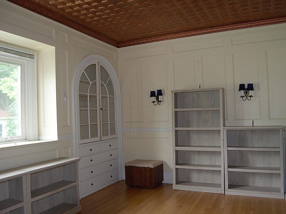 Original features include hardwood flooring, moldings and tin ceilings. Granite counter tops in modern kitchen. Adjacent mudroom, laundry and half bath. Family room with built ins off kitchen used as a library. Formal dining room and living room with fireplace. Spacious entry foyer leads to ornate stairway with stained glass windows.