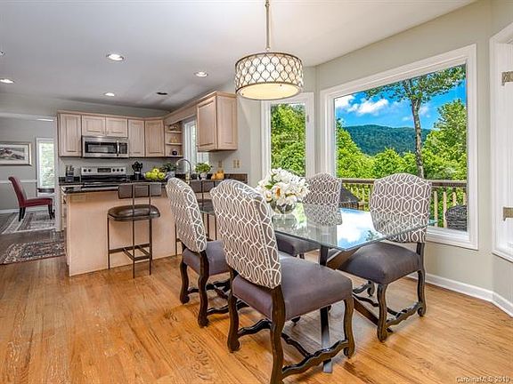 Convenient Fairview location in a park-like setting in desirable Fox Ridge just 15 minutes from downtown Asheville. This beautiful home is situated on a level ridge to capture inspiring long-range mountain views year-round. Professionally landscaped, there are multiple outdoor living areas and gardens. Impeccable taste and attention to quality and detail are found in the updated interior spaces. Open light-filled floor plan with upgraded kitchen flows to covered and uncovered outdoor decks. Spacious master suite has sunroom with fireplace for cozy morning coffee while enjoying Blue Ridge Mountain views. Flexible spaces in lower level include bonus room, media room, kitchenette & office with separate entry. $100,000 in upgrades include remodeled master bath, hardwood floors and HVAC systems.