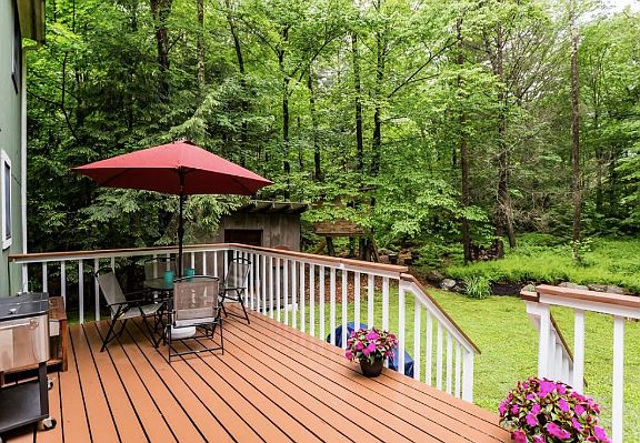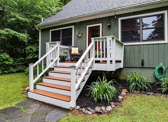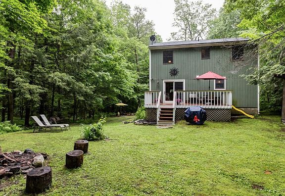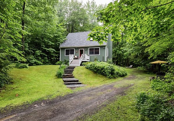 If you are looking for peace & tranquility, then this is the home for you! Sitting on 5.99 majestic acres with babbling brook, tree house and an oversized two car heated garage with workshop and loft. The home is beautiful offering a living room with beamed cathedral ceiling, hardwood floors & a Vermont casting wood stove, first floor master bedroom and full bath. Second floor has two large bedrooms with hardwood floors and a full bath. The walk out basement is partially finished for additional entertainment. This home is extremely impressive.