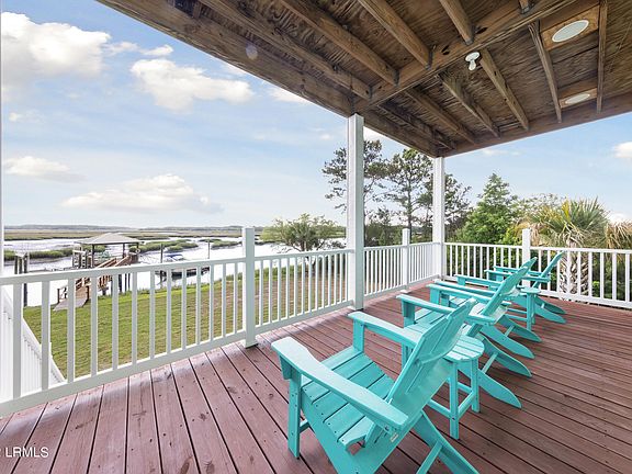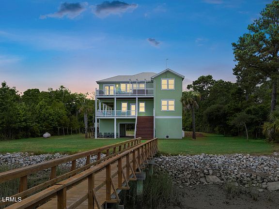 Welcome to this beautiful custom built waterfront home located on Warsaw Island. This stunning property offers 3.5 acres of privacy with a true deep-water short dock offering expansive views of Jenkins Creek. This gorgeous property offers endless amenities including covered pierhead with complete surround sound, float dock,100 AMP service, and a 20,000lb boat lift! A granite retaining wall re-built in 2022, a Generac home generator, a Rinnai, DP 70 hurricane rated windows and doors throughout, hardi plank siding, a metal roof, foam insulation, RV hook up, two storage sheds and stainless-steel cable ties from the roof rafters to the concrete footers. This 4 bedroom and 4.5 bath home is on two levels with elevator access to both levels from the garage. See more.. The 2nd level offers 3 ensuite bedrooms with a large living room/sitting area. The top floor offers a stunning open layout with expansive views of Jenkins Creek, a beautiful kitchen with custom cabinets offering plenty of storage, granite countertops, double wall ovens, gas cook- top, stainless refrigerator, dishwasher and microwave. There is an electrical hook up for a mobile home outside the home. Enjoy the reverse osmosis system for drinking water in the kitchen and water in the refrigerator, large living room & dining room with a beautiful stone fireplace that serve as the focal point, and the owner's suite overlooking the water with direct access to the porch where you'll find the massive hot tub. Every room offers private access to the wrap around porches. Surround sound is in every room as well as all porches. Warsaw Island is a super convenient neighborhood with shopping, Hunting Island State Park and Downtown Historic Beaufort just minutes away!