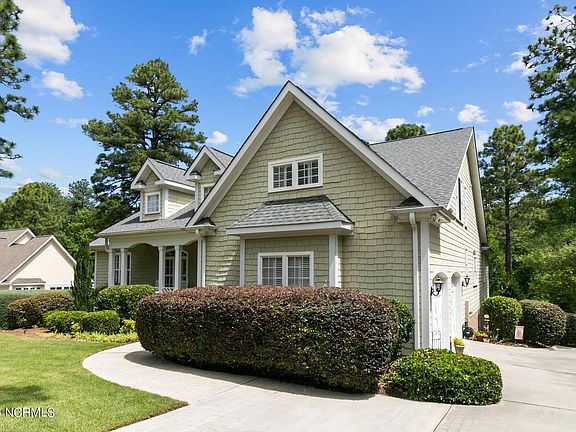 Welcome to your new home at 44 Glasgow Drive in the Desirable Gated Golf community of Pinewild Country Club. Boasting 48 holes of Superior Golf, golf school, driving range, practice range, Club House and Lake Pinewild. This wonderful 5 bedroom, 5 bath home welcomes you with the southern charm of a front porch. Enter into an entry foyer, opens to a Formal Dining Room with chair rail trim and Coffered Ceiling. Gorgeous Hardwood floors throughout the main living area. Living Room has Cathedral Ceiling, Stone Fire Place surrounded by built in book cases. It opens to a enclosed back porch, overlooking a Spacious Backyard, with Patio area. Kitchen has Maple Cabinets, Granite Countertops, Stainless Appliances, Electric Cooktop, Microwave, double sink, Cathedral Ceiling in eating area. Master Bath has his and hers single vanities, Garden Whirlpool Tub, Granite countertops, Tiled walk in shower and separate water closet. The main level has 3 bedrooms and 2 baths. Plantation shutters throughout home. Upper level has a Large Bonus Room, (possibly 6th bedroom), a Walk in closet and Separate bath and walk in attic Storage area. The lower level has a second Living area, Recreation area, Kitchen, two bedrooms, two baths, and Large Storage area with W/D connections for a second laundry room. This Home is perfect for an ''in law suite''. Landscaped, Fenced in back yard with Fire Pit Area. Golf Cart Bay is on the back side with Paved Path to Driveway. Updates; new roof 2022, new HVAC 2021; 2019, new microwave 2023.