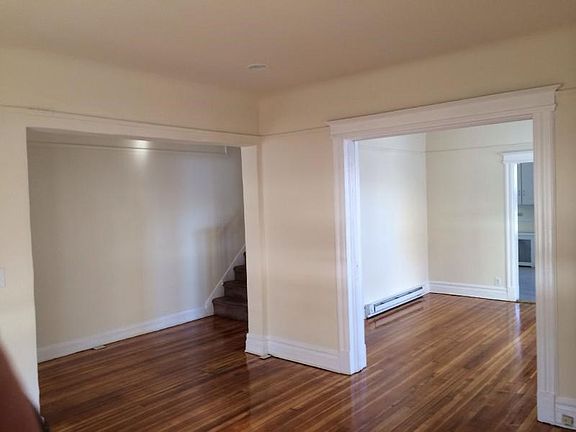 Very spacious eight room half duplex. Large living room, dining room with gleaming wood floors and spacious eat in kitchen/SS fridge included. Four bedrooms and full bath with claw foot tub on 2nd fl,