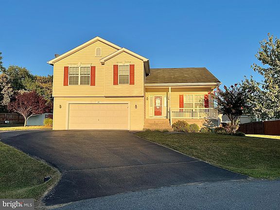Well maintained, move in ready split level close to the interstate, shopping and more. Main level features living room, dining area, kitchen, cathedral ceiling, wood floors, crown molding. Kitchen has a great island with additional storage. Upper level features 3 bedrooms and 2 full baths. Primary bedroom has large bath with separate tub and stand up shower and a large walk in closet. The lower level offers spacious family room with pellet stove and half bath. Rear deck with awning perfect for entertaining. 2 car garage with room for storage. Raised garden beds and a storage shed too.