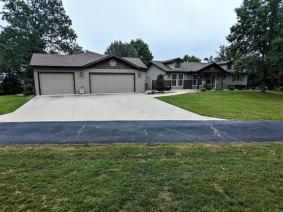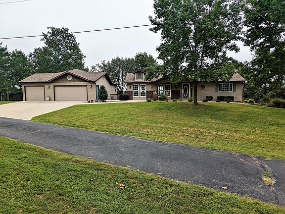 LOOKING OUT THE WINDOWS to enjoy the AWESOME TABLE ROCK LAKEVIEW here. Home is a lovely 3BR/3BA home with a detached 3-car garage & huge workshop which has views of the lake. Unique walkways from front to rear of house via wrap around deck on top level, and landscaped stairway to lower level, offer easy access to breathtaking year round east views of lake and Ozark mountains!!! Indoors you will find new, floor to ceiling windows providing front and back views in great room/kitchen as well as lovely Pella windows in sunroom and office at back of home that offer even more lake views! This house is perched on hilltop offering the unique quality of year round lake views to the east as well as winter lake views to the west. Lovely kitchen w/granite countertops & ample cabinets, the bar/ island, large pantry & 1/2 BA in entry all lead to the Large Master Suite which opens to step down Office with gas FP & lots of shelves. Lower Level has 2BR, Full BA, large Family Room with gas FP, storage area & Laundry room. Two Walkouts to the covered patios & Large Screened-in room w/views of the lake. Outside find below the garage & workshop, another garage for mowers, etc & nice storage room. Lovely landscaping from all sides of home & only 4 houses total share this area together so check it out. VIEWS ARE AWESOME!!! Available 10 X 24 slip w/new 8800# lift for addtional $$.