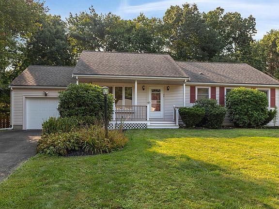 Welcome to this charming 2-bedroom, 2-full bath ranch home, perfect for comfortable living and entertaining. Walk right into a Large living room with cathedral ceilings. This home features a modern kitchen equipped with stainless steel appliances and beautiful granite counters. Slider leads to a sun room that offers a serene view of the spacious backyard, perfect for relaxing or hosting gatherings. Primary bedroom with double closets and full bathroom. Laundry located on primary level with additional full bathroom. Full basement for possible finishing for additional space. All this with an attached one car garage. Must see!