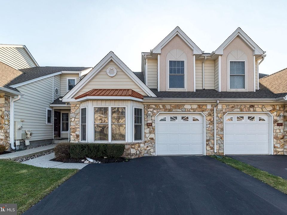 Welcome Home to 44 Grandview Drive located in the much desired neighborhood of Ivy Greene, a 55+ Community. Move right into this 2 Bedroom, 2 .5 Bath home offering a covered entrance. Inside, the foyer leads to a den with designer ceiling and three beautiful windows bathing this room in natural light. Just steps away you will find an inviting eat in Kitchen, boasting white cabinetry, white subway tiled backsplash and beautiful granite countertops with an undermounted sink. There are stainless steel appliances and lovely plank flooring, too. Next you will find a spacious open dining room and living room perfect for entertaining or movie night next to the cozy gas fireplace. A siding glass door will lead you outside to the custom patio. The main floor bedroom en suite offers a vaulted ceiling, ceiling fan, 2 windows overlooking the rear yard, 2 generous closets, a lovely private bath with white vanity, ceramic tiled floor and a double shower with glass doors and seating. The powder room with window is tucked privately near the den, a coat closet and a main floor laundry with brand new washer & dryer and utility tub completes the main floor. The second floor offers a second en Suite with full bath, sitting room, double closet and a spacious second bedroom too. A utility closet offers additional space for storage. The Attached garage is accessible to the interior home through the laundry room. The rear custom patio with electric awning, offers an inviting space to entertain or relax with your morning coffee on those warm summer mornings. New roof 2023, Patio 2016, Updated Kitchen 2016-18, HVAC 2015, Refrigerator 2020, Washer & Dryer 2023. Ivy Greene 55+ Community offers a club house for gatherings and a fitness room, card room and billiard room too. Lawn care, snow removal, walking paths included with HOA. Close to local parks, shopping and restaurants. Time to live the good life at 44 Grandview Drive!