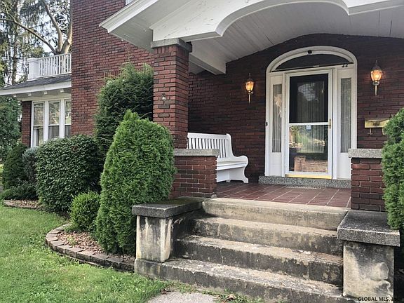 So much character in this lovely brick side hall colonial. Set on a quiet street yet moments to Rt 30 shopping, municipal golf course and the NYS thruway. Grand foyer leads to large living room w/wood burning fp & adjoining formal dining room. Quaint sun room w/wood burning fp off of living room. Working kitchen with breakfast nook and loads of pantry space. Gorgeous newly refinished hardwoods down with carpet over hardwood upstairs. 4 large bedrooms & full bath upstairs. 1/2 bath down. New 200 amp electric service, newer roof, boiler & hw heater. Minor cosmetics will bring this home back to it's glory!