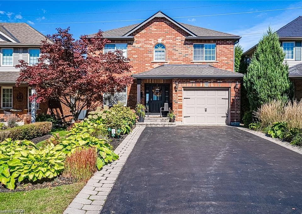 Welcome to 44 Grassyplain Drive, a charming red-brick home with great curb appeal and beautiful, award-winning gardens. Situated in a family-friendly neighborhood, this home is surrounded by well-maintained, detached properties. As you enter, you’re greeted by a bright foyer that leads to a sunny dining room and a spacious, open-concept kitchen and living room. The kitchen was updated in 2023 with quartz countertops, a matching backsplash, stainless steel appliances, and a central island with seating. The main floor is carpet-free, making it easy to clean, and has a practical layout for both everyday living and entertaining. Upstairs, the large primary bedroom features a walk-in closet and a private 4-piece ensuite. There are also three additional bedrooms, each with plenty of closet space and large windows that let in lots of natural light. A 4-piece bathroom and an office/flex space complete the second level. The finished basement includes a cozy rec room, which could easily be converted into another bedroom if needed. Outside, you can relax on the patio and enjoy the quiet view with no rear neighbors. This home is just minutes away from schools, parks, and the Ancaster Meadowlands Shopping Centre. Well-maintained and move-in ready, it has everything a growing family needs. Book a showing today before it’s gone!