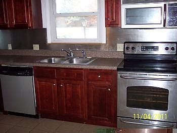 This 2 bedroom home also features a 1 car garage, new kitchen cabinets, counter top and newer appliances.  Newer bath with dble bowl sink and tile flooring. Lg bow picture window in living room. Hardwood floors. Shed. Covered patio.