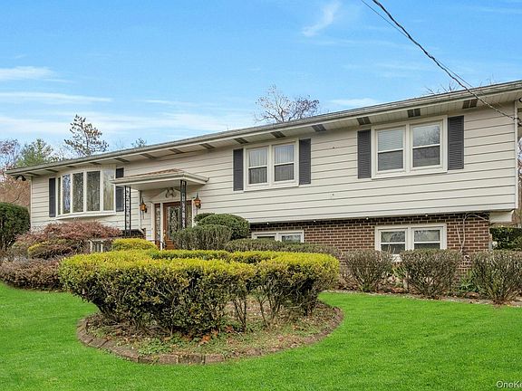 Discover the extraordinary space and versatility of this extra-large Hi Ranch, perfectly situated in the sought-after Village of New Hempstead. This expansive home offers room to live, grow, and entertain with comfort and ease. Featuring 5 oversized BRs and 3 full BAs, the layout is ideal for anyone craving generous living space. The main level includes a living room with Bay window and hardwood floors, currently protected under the carpeting, await a stunning reveal. One of the standout features is the sun-filled bonus room, wrapped in windows and overlooking the level yard. Can be a family room, studio, playroom, or home office. Perfect for multigenerational living or extended guests, this home also offers two full kitchens, one on each level. Sitting on over half an acre, the property provides exceptional outdoor space. A two-car garage completes the package. This home offers endless possibilities and unbeatable value. Don’t miss your chance to make this spacious gem your own!