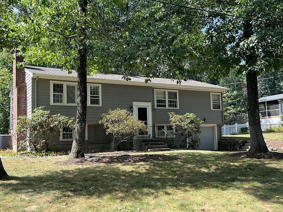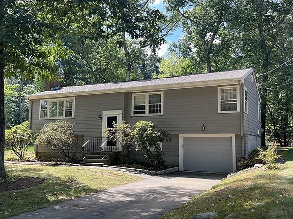This super well-cared for home is in a great location and has many recent major updates. The open floor plan flows nicely from the living room with gas FP into the dining area, both having vaulted ceilings and open to the remodeled kitchen featuring granite counters and newer appliances. All have beautiful bamboo flooring that extends down the main hallway to the bedrooms. The main bedroom has its own half bath, plus two additional bedrooms. All 3 BR's have traditional hardwood flooring under the carpeting. A full bath with tub/shower completes the main living area. On the lower level there is a family room with a 2nd wood burning FP and a den/office/craft room. The unfinished area offers lots of storage space and laundry area having access to a 1 car garage with an EV charger for your electric car. The yard features a newer Mahogany deck and wooded, private yard. Holliston has so much to offer the new owners of this home! Showings begin Friday 9th, OH Saturday 10th from 10-12pm