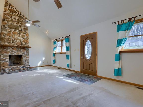 Don't miss out on this affordable and adorable cape cod situated on over an acre level lot! You'll love the open feel of the family room with a floor to ceiling wood burning stone fireplace. Eat-in kitchen with pantry, convenient first floor master bedroom, full bath and laundry room. The second floor offers two bedrooms and one with a private bath. The finished basement is perfect for entertaining with the web bar with granite counters, a half bath and storage room. Relax on the rear deck and enjoy the tree lined backyard. Two car garage plus a detached shed with electric. 100% financing available. Convenient location only minutes to the Maryland border.