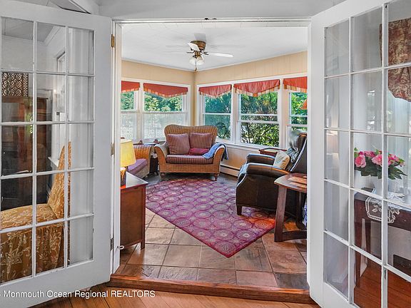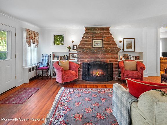 Location, Location! Charming 3BR/3BA home is located on a fabulous block just steps from the Navesink River. (Deeded access to the River - perfect for kayaking, paddleboarding & enjoying spectacular sunsets). First floor boasts a cozy LR with a gas fireplace, a sunroom with French doors, formal DR, family/sitting room, kitchen w/ granite counter tops, terra cotta floors & S/S appliances. There's also a 1st flr BR/office & full bath. Second level has a huge Master BR en suite that features a study/office area, walk-in closet, a sitting area as well as a spacious Master bath w/ a soaking tub & walk-in shower. French doors open to private balcony with view of the Navesink River. The perfect place to enjoy morning coffee. Brick backyard patio - Great for relaxing or entertaining. A must see!