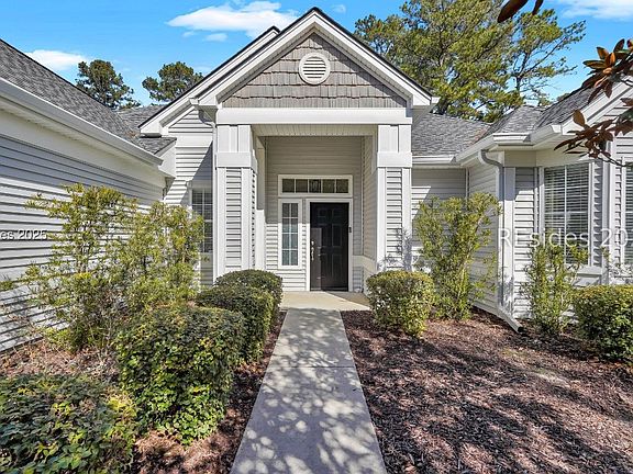 Enjoy serene views of the 8th green of the Okatie Creek golf course from this beautifully upgraded 2BD/2.5BA PLUS den/3rd BD Charlotte Madison home in Sun City. Featuring an open-concept floor plan, this home offers a spacious great room, dining area & a Carolina room w/custom built-ins, perfect for relaxing or entertaining. The kitchen is well appointed w/stainless steel appliances, gas range & spacious pantry. Additional highlights include an oversized garage for extra storage, vinyl siding, smooth ceilings & bay windows in both the primary and guest bedrooms. This very private homesite is conveniently located b/w Town Square & Hidden Cypress.