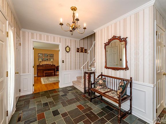 Stunning 4 BR 2.5 Bath Colonial in desirable Milltown boasts features to fall in love with! Beautifully maintained inside & out w/instant curb appeal, just pack your bags & MOVE RIGHT IN! Foyer entry welcomes you in to find elegant molding, gleaming HW flrs & a sophisticated aesthetic all through. Large, light & bright LR + adjacent FDR w/French Doors make dinner parties a breeze! Gourmet EIK offers gleaming granite counters, rec lights, Pantry, delightful breakfast bar & sunsoaked Dinette w/slider to the yard. Impressive FR feat. trendy exposed beams & cozy WB fireplace to warm chilly nights. Convenient Laundry rm & 1/2 bath round out the main lvl. Upstairs, the main bath + 4 generous BRs w/ample closets, inc the Master! MBR feat. it's own WIC & ensuite bath. Finished Basement is an ADDED BONUS w/HUGE Rec Rm & Bonus Rm. Summer BBQs are made easy w/a sizable Deck, Shed & plush Yard backing to peaceful, privatee views. 2 Car Garage w/dbl wide drive, too! TRULY A MUST SEE!!