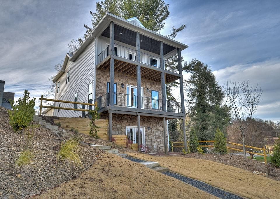 Experience Downtown Blue Ridge Cottage Living ...comfortable & quaint, this new construction home offers flowing & generous interior & next to no maintenance with ultra quiet interior and phenomenal downtown & mountain views from large private porches...shopping, restaurants, and galleries only a short stroll away...ultra energy efficient, only the best in fixtures & stainless appliances in chef's kitchen, custom cabinetry with soft close features, tile backsplashes & granite counters, master suite w/ private balcony & spa like bath, loft/sitting/office area, spacious guest rooms w/ mix of drywall & wood, open kitchen/living/dining concept, plentiful closets and storage, easy access concrete drive & roomy garage, full finished terrace level w/ guest quarters & rec room, additional designated guest parking, gentle & lush landscaped yard area...a view like no other, great for full time living, much needed getaway, or approved for vacation rental...ultimate curb appeal! Home has been professionally & tastefully staged with furnishings and decor and is available for purchase upon separate bill of sale. Minimal art work has been virtually staged.