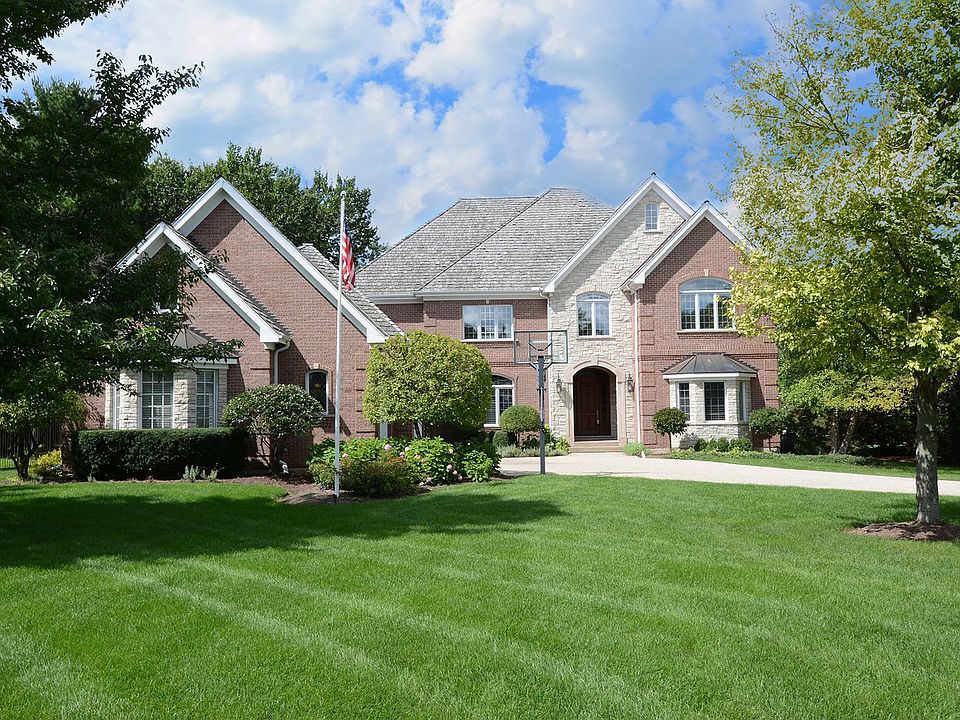 Stately brick and stone home located in the gated community of Wynstone, 5,500+ square feet of living space with an open floor plan. Family Room boosts a brick fireplace, Library has extensive built-ins. Amazing custom cabinetry, SubZero refrigerator, and generous island complete the gorgeous kitchen. Master Suite boosts a fireplace, bath and large walk-in closet with changing area. Four additional bedrooms upstairs that share Jack-and-Jill baths. Newly finished lower level offers a large recreation/game room area with a beautiful bar, theatre and exercise room. There is also an additional bedroom with a full bath making entertaining and hosting overnight guests a breeze! Paver patio in the spacious yard is great for a morning cup of coffee. All of the beauty sits on over half an acre. The community offers 9 miles of private roads for strolling, jogging and biking, plus fishing at the stocked lake. You really need to see this to take it all in!