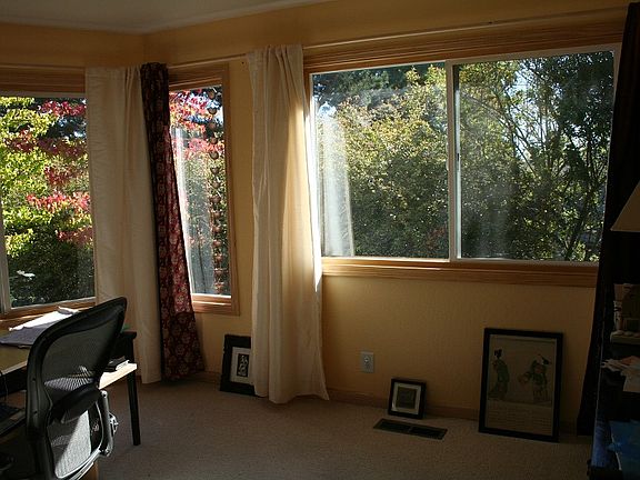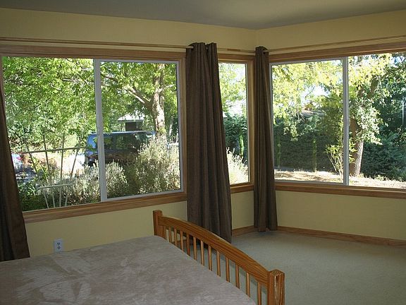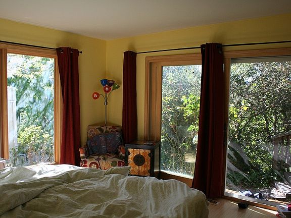 Sunlight-filled 3 BR 2 BATH house in desirable Glorietta neighborhood Bright and sunny in every room. 4 minutes’ drive to freeway and Orinda BART. Very quiet, no freeway noise. Near end of cul-de-sac, wonderful neighbors. 3 minutes’ drive to shops and cafés. 8 minutes’ walk to Glorietta Primary School down country paths. South-facing, large deck and flat area, then gently sloping. Views onto beautiful garden with mature trees. Light-filled, newly painted BRMS, wood-framed windows. Fully equipped with high-quality, almost new appliances. Approx 2440 sq. feet. Lease till July 2014, shorter lease possible. No smoking, pets subject to approval. Lease till July 2014, shorter lease possible. Description: Lovely south-facing house with a very happy feel to it, enormous windows, a flat and also gently sloping yard, at the end of a private cul-de-sac. It includes three newly painted bedrooms with large wood-framed windows, two bathrooms, a large living room and dining area, a family room, a bright kitchen, a laundry room, and a very small storage space but lots of cupboard space. Fully equipped with high-quality, almost new appliances; two fireplaces. Single-story. View of mature trees and garden from every room; garden has two vegetable patches and many fruit trees. Available until July 2014, shorter lease possible. Gardener included. No garage with rental but big driveway. Neighborhood Description Higly desirable Glorietta neighborhood