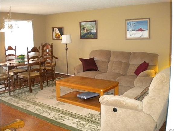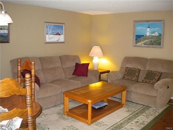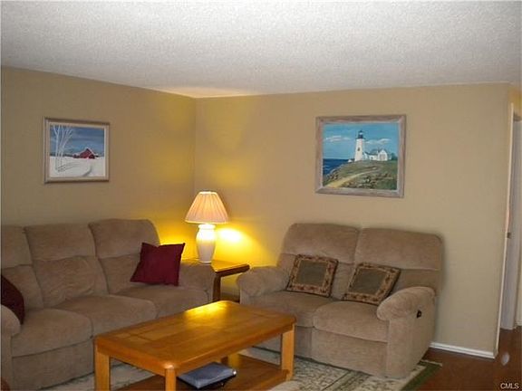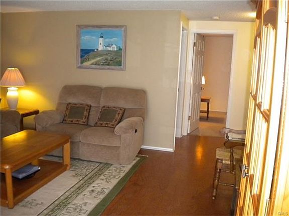 Desirable first floor two bedroom unit with sliders to private patio. Eat in kitchen, large living room/dining area, 2 bedrooms with carpeting, extra storage room. Plenty of parking. Mailbox close to unit. In-ground pool and common laundry house on property. Close to shopping, highways, restaurants, medical walk-in. Low taxes and common charges. Call for an appointment.