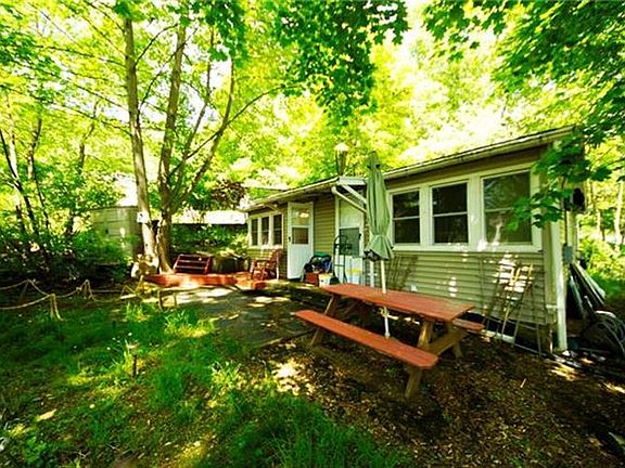 Looking for a weekend or weekly getaway? Look no further! Owners bought two units and converted it to a one family getaway. Tile as seen, laminate flooring as seen. Storage shed off deck. Large deck for entertaining, sliding glass doors from bedroom and den onto deck. Roof 2011, electrical 2011, 2010 deck, bathrooms tiled floor to ceiling, tongue grove cedar wood ceiling in entryway, largest square footage in the community. Electric heat in each room. Seasonal water from April to October. CO-OP, Required board approval. HOA fees pay for lawn, pool maintenance, and taxes of approximately $416 per month.