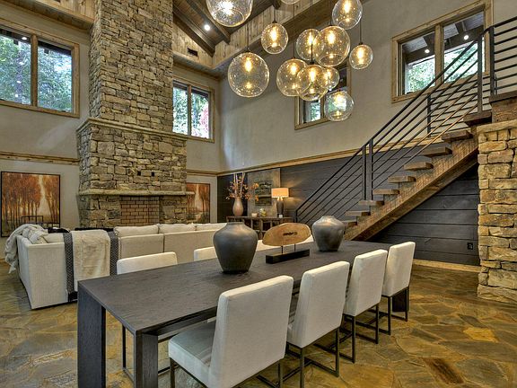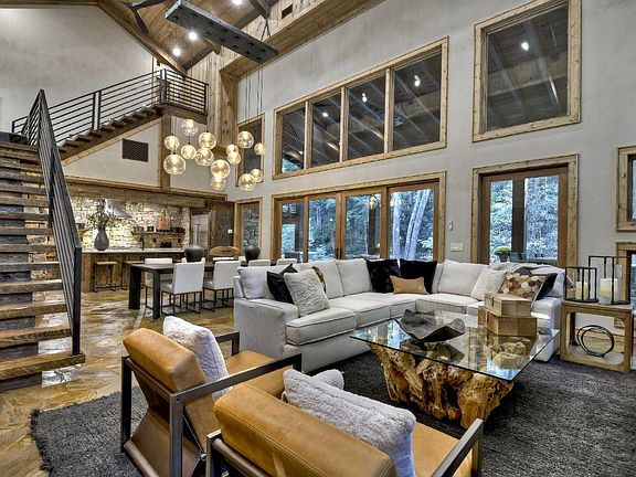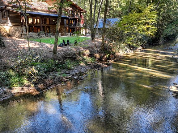 Keith Sumner Masterpiece directly on Fightingtown Creek! Mountain modern design w/ a catwalk overlooking a stunning great room, 30 foot ceilings & towering rock fireplace. Chef's kitchen offers Viking appliances, Alder cabinets & a grand quartzite island. Entrance level features 2 spacious bedrooms w/Jack & Jill bath. Travel upstairs to find a grandiose primary suite w/gas log fireplace, sitting area, large walk in closet, soaking tub, double vanity, separate shower w/ multiple shower heads, & water closet. Bedroom features a balcony area overlooking the rushing waters of Fightingtown. Lower level bedroom w/gas log fireplace, access to covered porch & ensuite bath. Spectacular outdoor living area w/full outdoor kitchen, commercial grade beverage cooler, Green egg smoker, gas grill & linear firepit overlooking the creek. Professionally landscaped, 2 car garage & all paved access. Over 200 feet of creek frontage featuring trophy trout & a truly special setting.