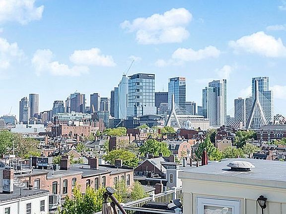 Rarely Available! Monument Area! Panoramic, jaw-dropping VIEWS from both levels of this PENTHOUSE & from the large private ROOFDECK overlooking Boston! Rich wainscoting adorns the staircase walls. Skylit kitchen with JennAir gas range, cherry cabinets/granite is off the spacious Dining Room with a comfy window seat & built-in storage cabinetry. Step down to the sunken Living Room with a vaulted ceiling (and that view to die for!), a wood-burning stove, exposed brick, & more built-ins! Updated glass-enclosed step-in shower in full bath. ASSIGNED PARKING space, IN-UNIT LAUNDRY ROOM, and private storage room in basement, accessible from both inside & the parking area. Easy access to the T, highways, and the Harbor Ferry to downtown Boston. Stroll to the great restaurants and shops that Charlestown offers, too. Don't miss out on this one!