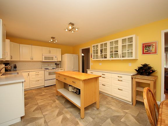 A Treasure to Behold! This beautiful 2288+ sq ft, 4 bedroom home set on just under an acre on a corner lot will take your breath away. Completely updated to perfection, classic arched doorway entrance unveils an open styling home with spacious rooms & subtle characteristic features throughout. Begin with the living room with white-wash brick fireplace includes an energy efficient wood burning insert, bay window, recessed lighting and hardwood floors that are throughout the home. Next you will find the spacious kitchen with white cabinetry & open dining area all connected to a family room with 3 walls of windows capturing the afternoon sunlight and enjoy the picturesque views to the deep and level backyard. A deck for outdoor dining, grilling of just relaxation is accessed from the family room. Down the hall from the living room is a full bath, completely updated from top to bottom, and 2 great sized bedrooms. One of these rooms has been nicely utilized as the home office overlooking the deck & backyard activities. The Master Bedroom, 4th bedroom and full bath comprise the second floor. The second floor bath offers a walk-in custom tiled shower, granite top oversized vanity. There is a 2 car garage under the house adjoined by full unfinished basement that offers great potential for future rec room or private home office. The roof, gas furnace and hot water heater are under 5 yrs old. Nothing to do but Move In & Smile a Lot!